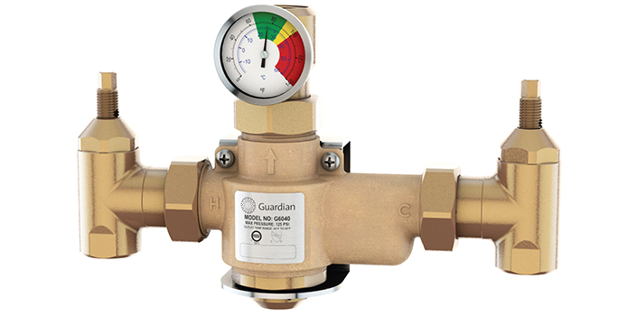 The mixing valve must do more than just allow you to set the outlet temperature. It must also have enough capacity to deliver the required flow rates as set out in the standards, which are a minimum 75.7 litre per minute for emergency showers and 11.4 litres per minute for emergency face/eyewashes. In addition, it’s important that any loss in cold or hot water supply is treated differently. A loss of hot water should result in a “cold-water bypass” so the emergency shower and eyewash will still operate. However, in the event of a loss of cold water, the mixing valve should shut off to avoid scolding the patient.