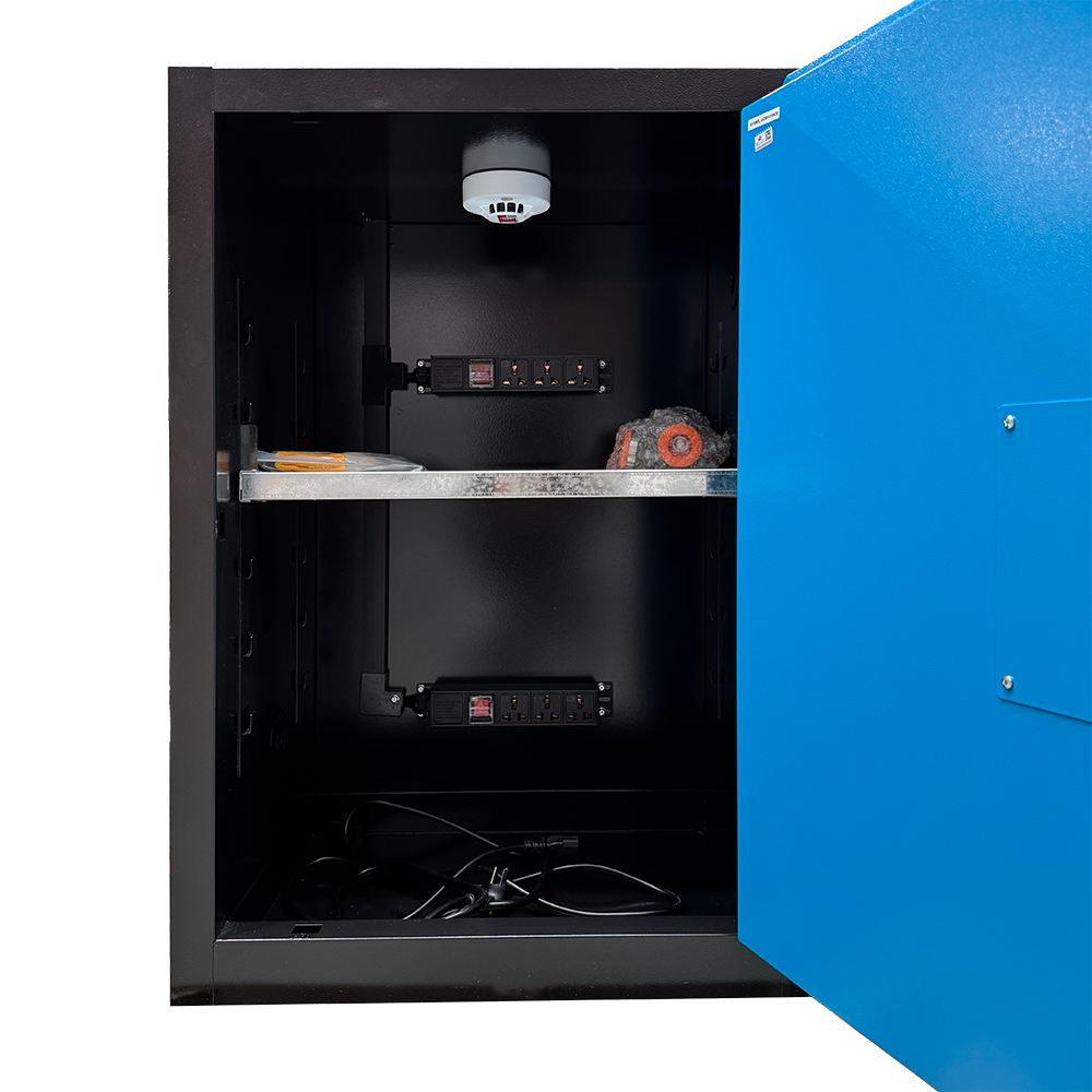 Engineered with integrated safety technology, the cabinet includes a highly sensitive, battery powered smoke detection alarm to provide early warning in the event of battery failure or fire.