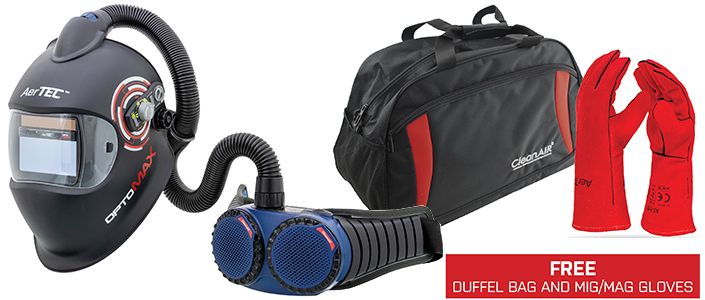 Our kit is all packed in a free CleanAIR duffel bag with a complementary pair of MIG/MAG welding gloves.